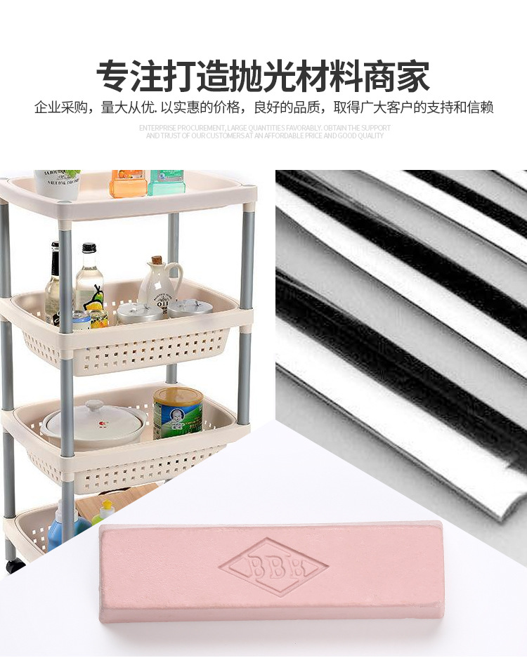 溫州華銘拋光研磨材料有限公司提供的bbb粉色拋光蠟(拋光臘)可用于金屬、不銹鋼、木雕玉石等固體打磨拋光用,可以增加金屬、不銹鋼、木雕玉石等固體光澤,保護產品漆膜免受潮濕、劃傷與灼傷的作用。正確地使用上拋光蠟可使產品更富于光澤。
